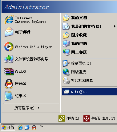 在電腦系統(tǒng)的右下角 開始 -> 運行