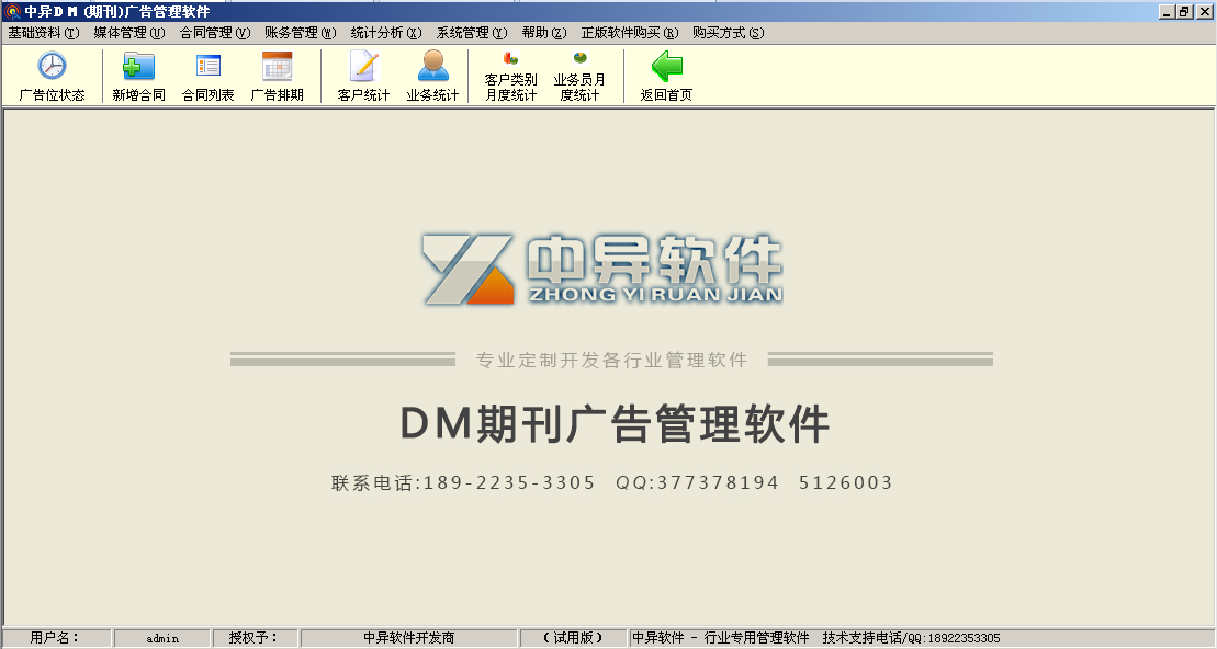 1、基礎(chǔ)資料管理:客戶資料管理、媒體資源管理( 刊期設(shè)置、版面版位設(shè)置、版位廣告刊登狀況)、財務收支 等信息設(shè)置。